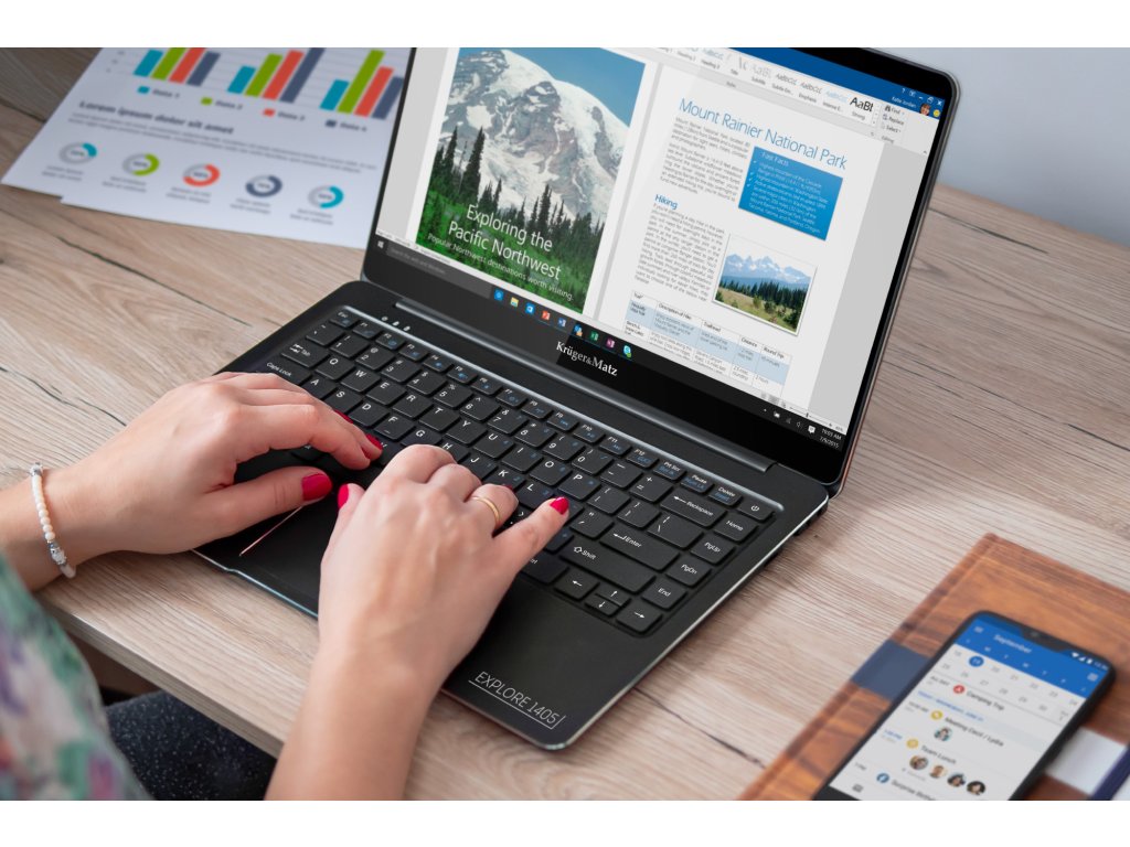 Bez ohledu na to, jakou činnost vykonáváte a kolik času trávíte používáním zařízení, práce s Kruger&Matz Explore 1405 bude čistou radostí. Ultrabook je vybaven 14palcovým IPS displejem s rozlišením Full HD, který zaručuje mimo jiné vyšší detailnost obrazu a živé barvy. Přesvědčte se sami!