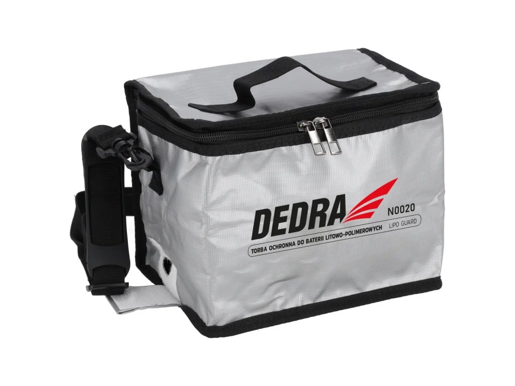 Ochranná taška na LI-PO akumulátory DEDRA N0020 byla navržena s cílem minimalizovat riziko spojené s poruchou lithium-polymerových akumulátorů, jako jsou zkraty nebo propálení.