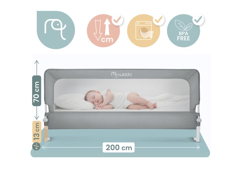 Ochranná zábrana do postele zabezpečující branku blokáda 200 cm Nukido NK-228 šedá