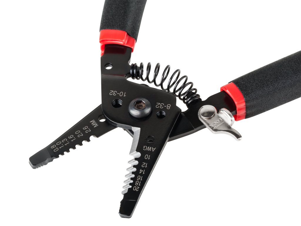 Kalené čelisti a čepele umožňují lepší přesnost při stříhání, a zoubkovaný nos vám usnadní stahování izolace a minimalizuje riziko poškození vodiče. Navíc kleště mají několik čepelí různé velikosti, díky čemuž si můžete vybrat velikost odpovídající tloušťce zpracovávaného kabelu.