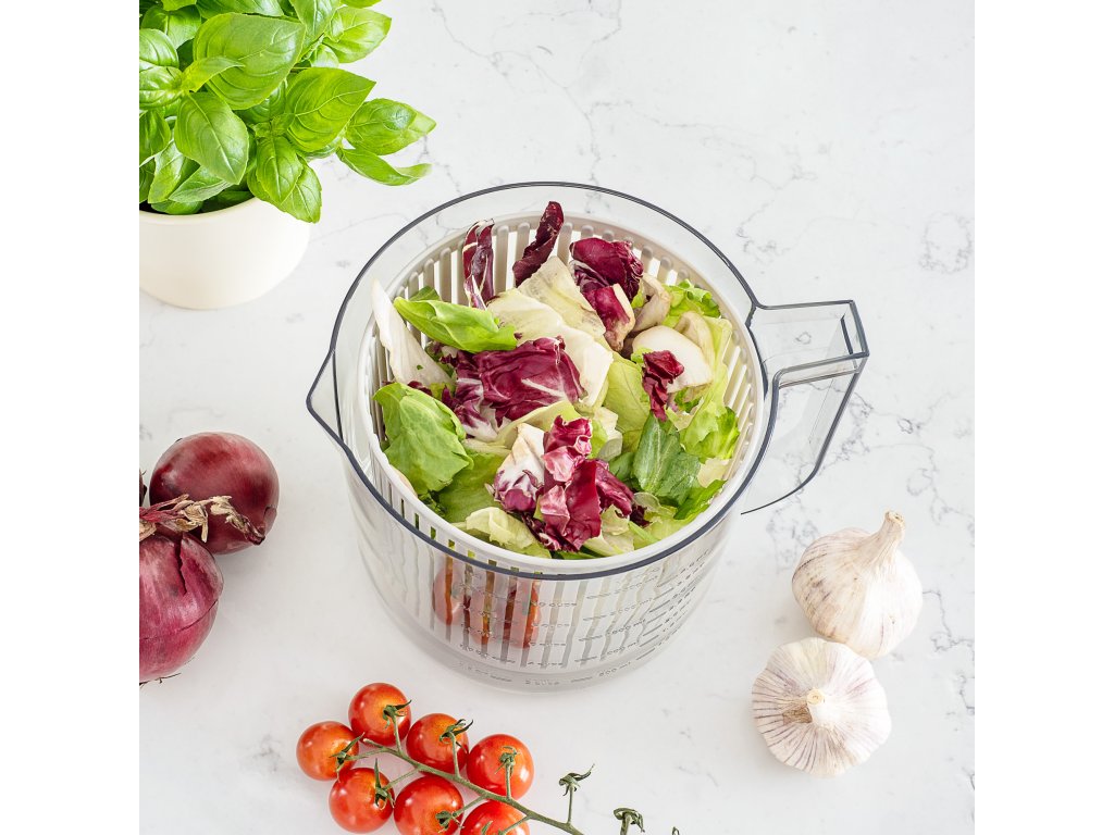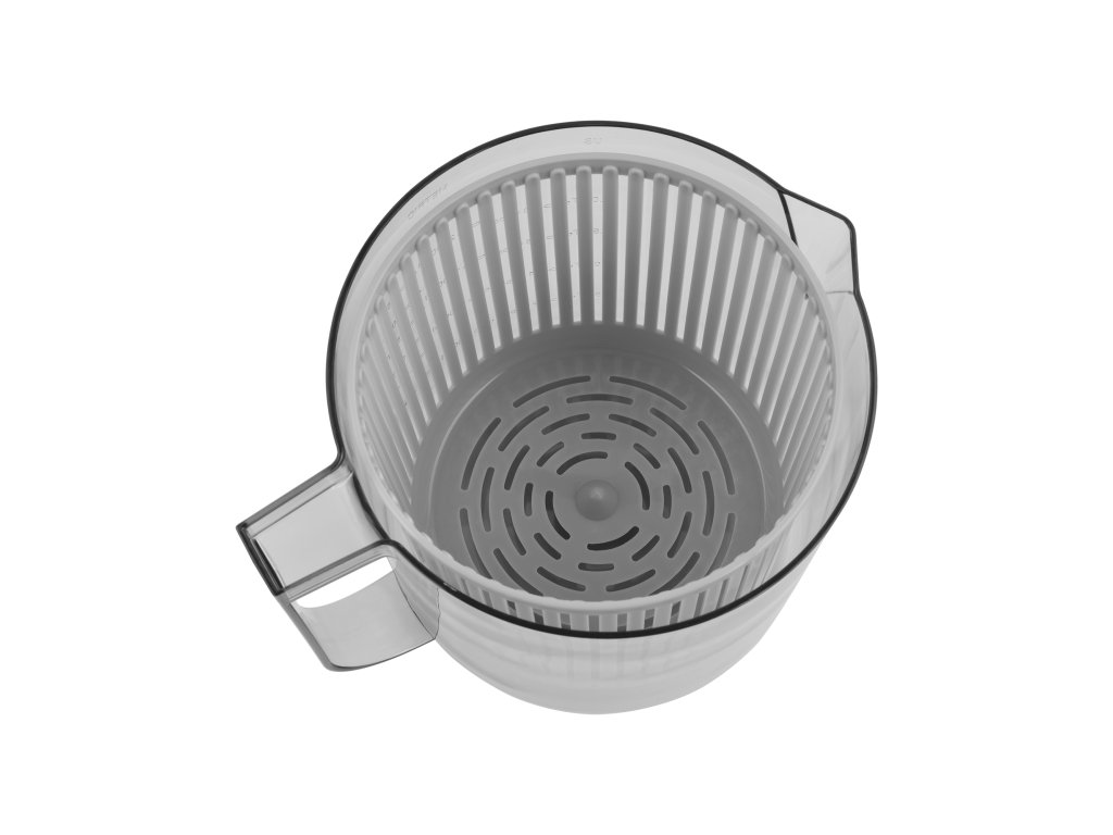 Po vyjmutí části na sušení salátu lze nádobu použít také pro přípravu jiných pokrmů. Tím spíše, že na jejích stěnách je umístěna objemová stupnice, díky čemuž není potřeba další nádoby pro odměření ingrediencí. Vnitřní část sušičky můžete rovněž využít jako cedidlo.