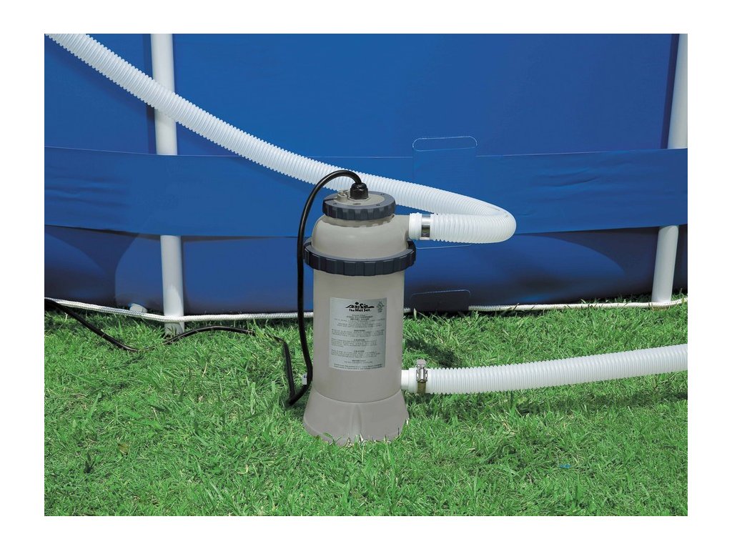 Pokud teplota vody v zahradním bazénu není právě lákavá k použití, je dobré využít užitečný ohřívač. Toto jednoduše montovatelné zařízení zajistí optimální teplotu v rozmezí od 17 do 34 stupňů C. Další výhodou je praktická pojistka, která zabrání přehřátí nebo přepálení. Součástí balení je také teploměr, hadice a svorky k němu.