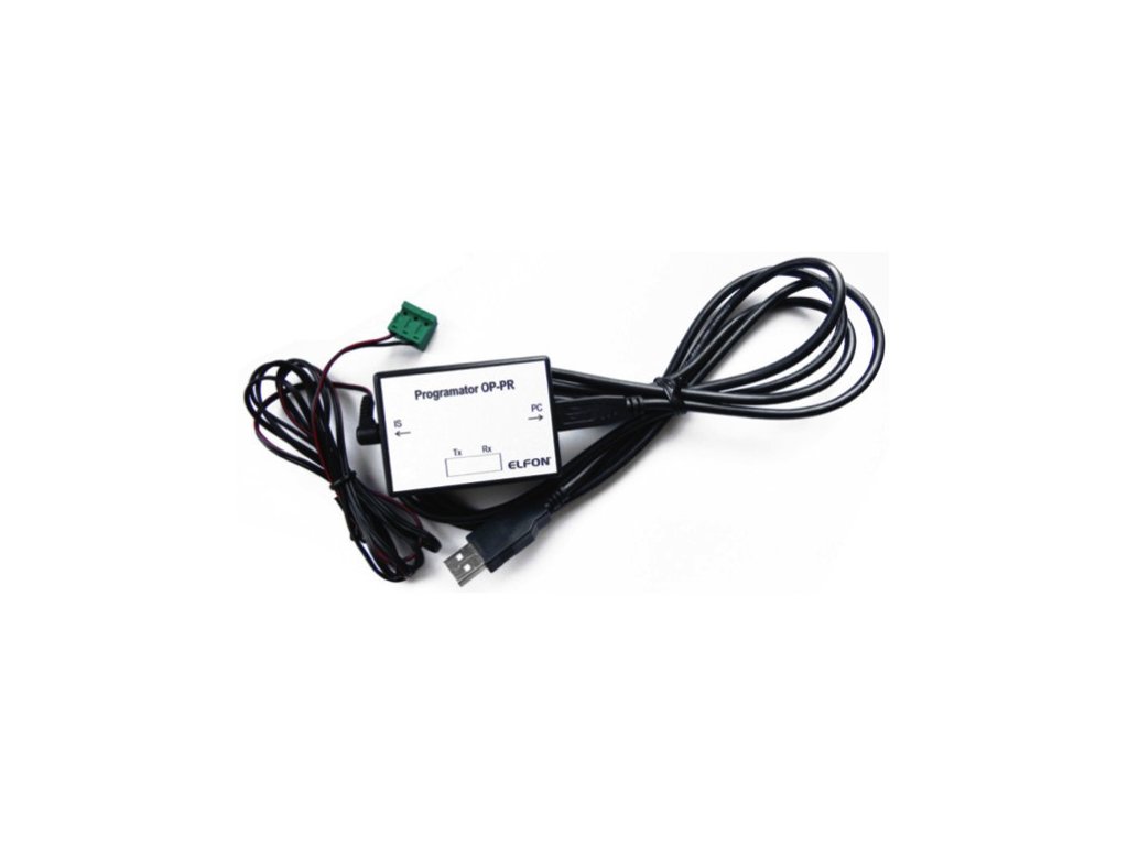 Programátor OP-PR2 slouží k konfiguraci a aktualizaci panelů Optima SL255 a Optima 255V2 z úrovně počítače PC (kabely v balení).