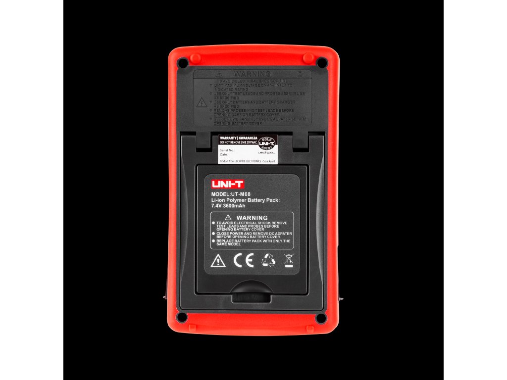 UTD1025CL je vybaven 3,5palcovým TFT LCD displejem s rozlišením 320x240 px, který poskytuje čitelný obraz a intuitivní ovládání. Napájí ho lithium-iontová baterie s kapacitou 3600 mAh, což umožňuje dlouhodobý provoz bez nutnosti častého nabíjení. Kompaktní rozměry (199 x 118 x 49 mm) a nízká hmotnost (0,9 kg) činí osciloskop snadno přenosným a použitelným v různých podmínkách.