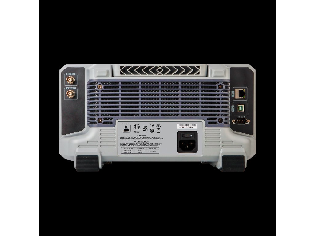 Rozhraní: USB-Host, USB-Device, LAN, EXT Trig, AUX (Trig Out, Pass/Fail, DVM)