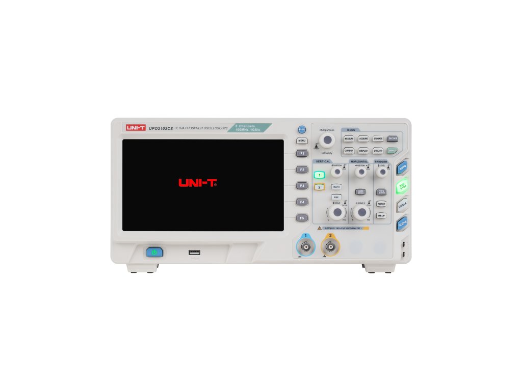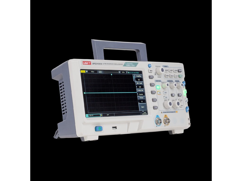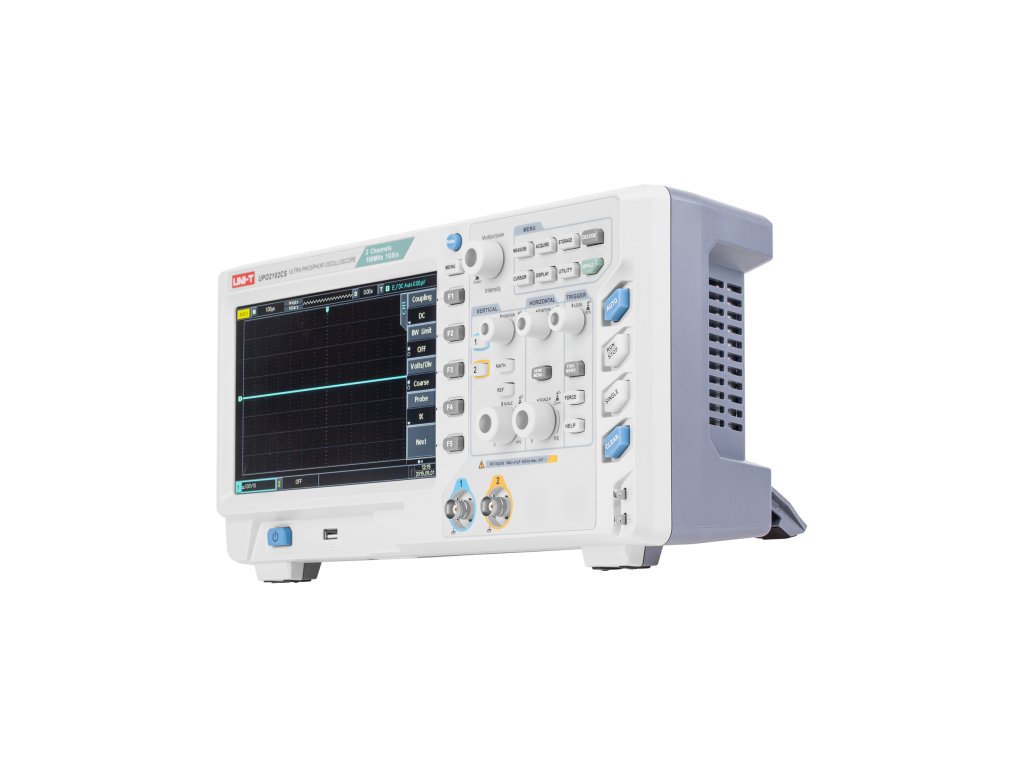 UPO2102CS je napájen univerzálním napájecím zdrojem, což umožňuje jeho použití v různých prostředích po celém světě. Kompaktní rozměry a relativně nízká hmotnost 3,5 kg činí osciloskop pohodlným pro přenášení a používání. Rozhraní USB Host, USB Device a LAN zajišťují snadnou integraci s jinými zařízeními a možnost rychlého přenosu dat.
