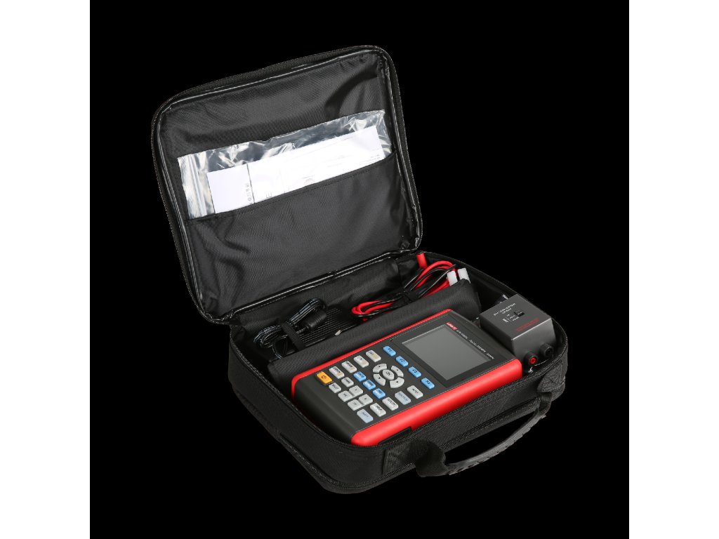 Příslušenství: napájecí kabel, měřicí kabely, měřicí sonda, USB kabel, napájecí adaptér, přípojky pro měření proudu
