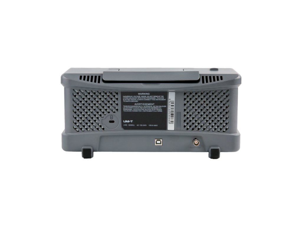 ----------- PARAMETRY HLAVNÍ ----------- Šířka analogového pásma: 100 MHz Doba nárůstu: 3,5 ns Počet kanálů: 2 Vzorkovací frekvence: 500 MS/s Hloubka paměti: 64 kpts (jednotlivě), 32 pts (dvojitě) Rychlost zachytávání průběhů: 5000 wfms/s Časová základna: 2 ns/div ~ 50 s/div Způsob ukládání měřených dat: setup, wave, bitmapa Módy spouštění: hranou, šířkou impulzu, video signálem Matematické operace: sčítání, odčítání, násobení, dělení, FFT Rozhraní: USB Host, USB Device, Pass/Fail ----------- VLASTNOSTI OBECNÉ ----------- Napájení: 100 V~240 V AC rms, 50/60 Hz Displej: 7” TFT LED (800x480 px) Rozměry: 306 x 138 x 124 mm Hmotnost: 2,5 kg-----------