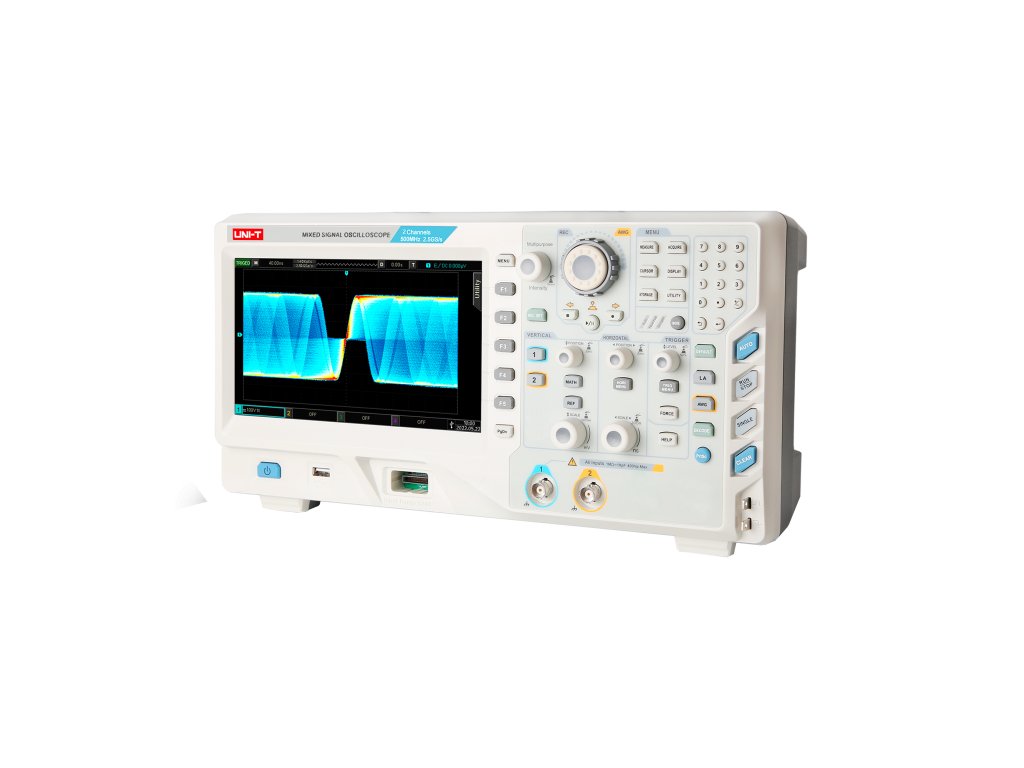 ----------- PARAMETRY HLAVNÍ ----------- Šířka analogového pásma: 350 MHz Čas nárůstu: <=1 ns Liczba kanałów: 4 Częstotliwość próbkowania: 2,5 GS/s Głębokość pamięci: 250 Mpts (1 kanał) Szybkość przechwytywania przebiegu: 200 000 wfms/s / 1 000 000 wfms/s Podstawa czasu: 5 ns/div~50 s/div Impedancja wejściowa: (1MOhm ±2%) II (20 pF ±3 pF) Czułość odchylenia pionowego: 1 mV/div~20 V/div (1M?) Dokładność wzmocnienia sygnału: <=±3% Zapis przebiegów: 65 000 ramek Sposoby wyzwalania: Edge, pulse width, runt, window, N-edge, delay, timeout, duration, setup/hold, slope, video, code Opcje dekodowania magistrali szeregowych: RS232/UART, I2C Operacje na przebiegach: A+B, A-B, AxB, A/B, FFT, operacje logiczne, zaawansowane Pomiar automatyczny 27 parametrów: Peak-Peak, Amplitude, Maximum, Minimum, Top, Bottom, Mean, Middle, Cycle Mean,RMS, Cycle RMS, Area, Cycle Area, Overshoot, Preshoot, Frequency, Cycle, Rise Time,Fall Time, Positive Pulse, Negative Pulse, Positive Duty Ratio, Negative Duty Ratio,Delay A->B (Rising edge), Delay A->B (Falling edge), Delay B->A (Rising edge), Delay B->A (Falling edge). Typy zobrazení výsledků: 5 výsledků současně Statistiky měření: Average, Max, Min, standardní odchylka, číslo měření Frekvenční okno: 6 bitů Rozhraní: USB-Host, USB-Device, LAN, AUX (Trig Out, Pass/Fail) ----------- OBECNÉ VLASTNOSTI ----------- Napájení: 100V~240VAC, 50Hz/60Hz Displej: 8” TFT LCD, WVGA (800×480 px) Hmotnost: 4,5 kg Rozměry: 370 x 185 x 115 mm-----------