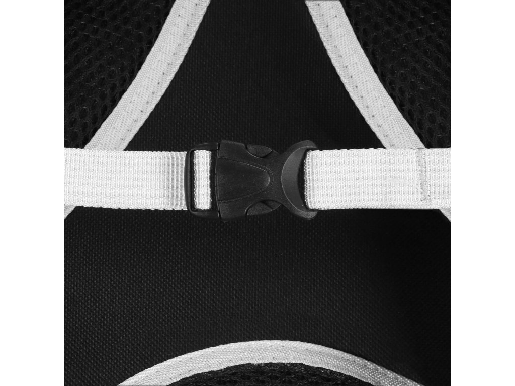 - Na zádech ventilační systém - pásy s pěnou pokryté prodyšnou síťkou + prodyšná síťka na vnitřní straně popruhů.