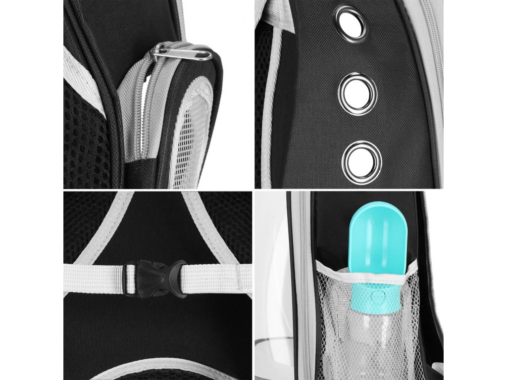 - Přední stěna batohu je vyrobena z průhledného, tuhého PVC, odepínatelná oboustranným zipem.