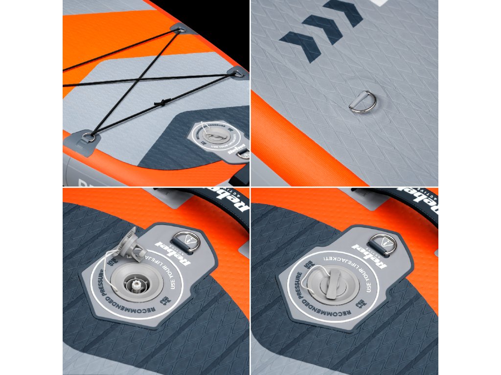 Deska SUP RBA-4507 je dostupná ve třech barevných variantách. Elegantní šedá jí dodává moderní a stylový vzhled, modrá přináší pocit klidu, a oranžová vás nechá vyniknout a dodá dynamiku každému vodnímu dobrodružství. Nabídka se týká desky v oranžové barvě. Ostatní barvy jsou dostupné v samostatných nabídkách