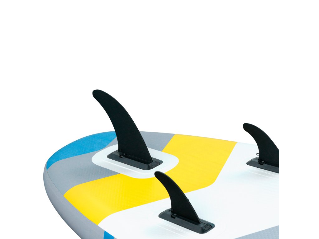 Deska RBA-4507 má tři zasouvací ploutve – jednu větší centrální ploutev a dvě menší ploutve po stranách. Tato konfigurace poskytuje dokonalou rovnováhu mezi stabilitou a ovladatelností. Dodatečné boční ploutve zlepšují kontrolu během zatáček a umožňují dynamičtější pohyby, například při surfování.
