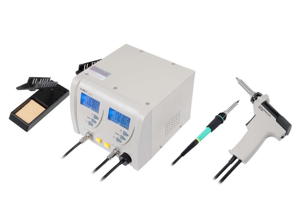 Dva nezávislé digitální displeje umožňují simultánní sledování teploty pájecího pera a odpájecího zařízení, což usnadňuje kontrolu nad pracovním procesem. Integrované čerpadlo s výkonem 600 mmHg v odpájecím zařízení zajišťuje efektivní odstranění přebytečného pájky. Součástí balení jsou také náhradní hroty, filtry a čističe, které umožňují dlouhodobé použití bez nutnosti častého nákupu dalších doplňků.