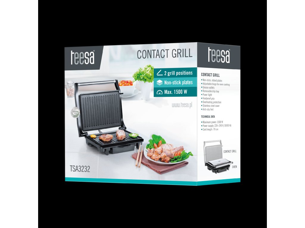 Přemýšlíte, který elektrický gril vybrat? Samozřejmě takový, který vám nejen umožní připravit lahodná jídla, ale také pomůže postarat se o bezpečnost vaši a vašich blízkých. Kontaktní gril Teesa má neohřívající se rukojeť, protiskluzové nožičky a ochranu proti přehřátí – to vše proto, aby kuchyňské revoluce byly čistým potěšením. Připravte své oblíbené pochoutky tak, jak máte rádi!