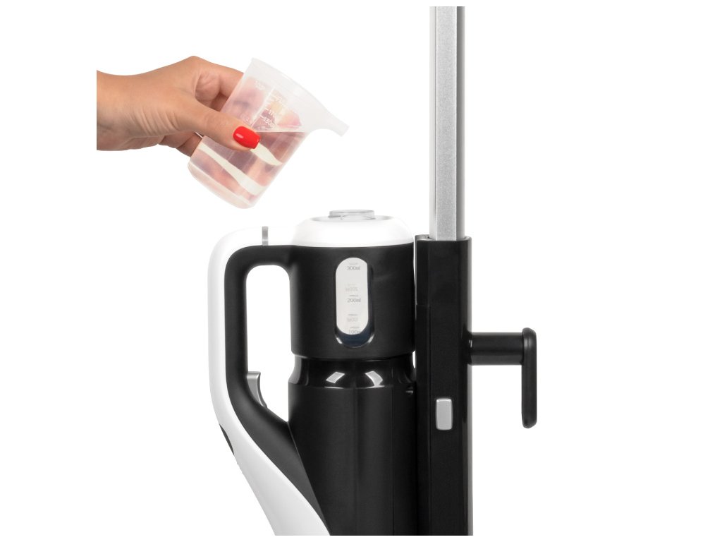 S mopem Steam Clean nemusíte ztrácet čas a sílu na nalití vody s čisticím prostředkem do kbelíku a ždímání hadrů. Místo toho dostanete integrovanou nádrž o objemu 380 ml, která umožňuje delší úklid bez nutnosti častého doplňování vody.