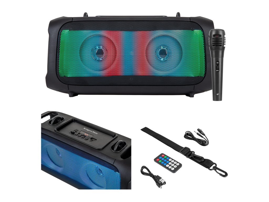 Navíc, funkce True Wireless Stereo umožňuje bezdrátové propojení dvou reproduktorů Kruger&Matz, čímž dodáte své párty více hudební síly. Další výhodou je mikrofonní vstup, který poskytne mnoho radostných chvil během karaoke zábavy.