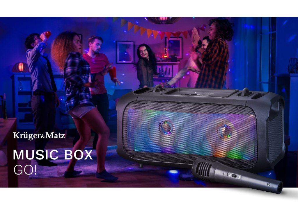 Pokud přemýšlíte, jaký reproduktor na párty bude nejlepší, právě jste našli odpověď! Vybavený dvěma 4” měniči o výkonu 8 W, Bluetooth reproduktor Kruger&Matz zaručuje vynikající kvalitu vašich oblíbených skladeb, a mikrofonní vstup poskytne mnoho radostných chvil během karaoke zábavy. Pozornost si zaslouží také rozmanitost médií, díky kterým můžete přehrávat hudbu na reproduktoru Music Box Go!