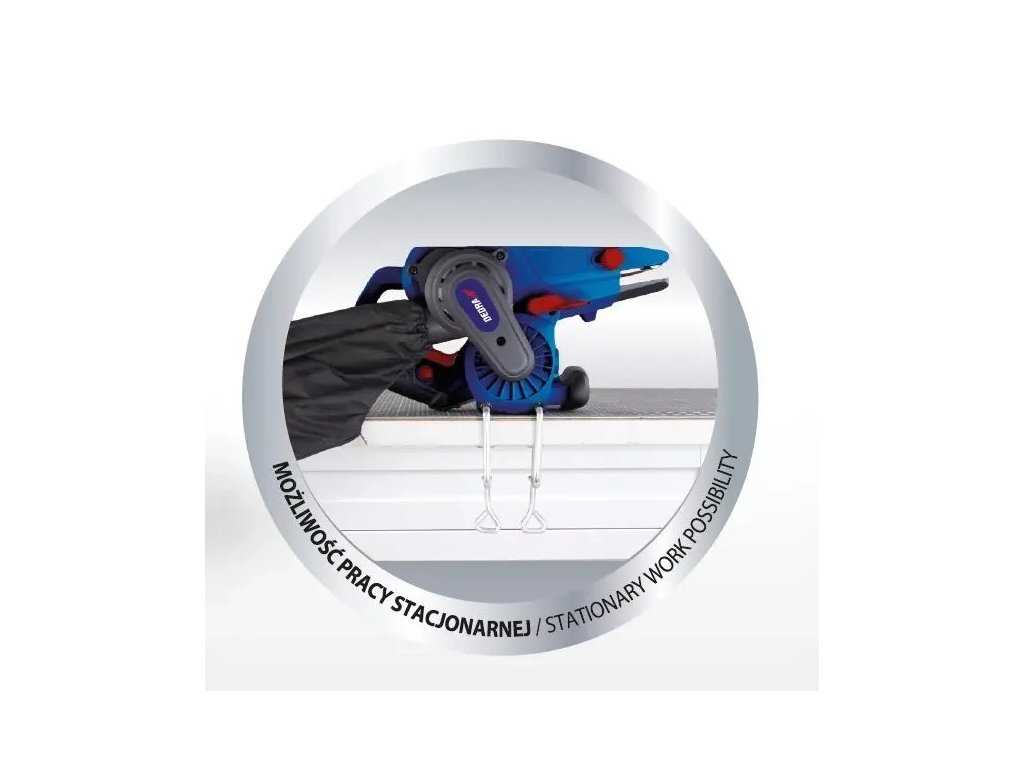 To, co ji odlišuje od ostatních modelů, je schovaná ochranná krytka pásu, která umožňuje broušení v obtížně přístupných místech nebo místech s nestandardní geometrií, kde běžné brusky mohou mít problémy. Další unikátní vlastností je možnost stacionárního použití připevněním k pracovnímu stolu, což umožňuje volnou manipulaci s materiálem. Zámek spínače pro nepřetržitou práci zaručuje další pohodlí při dlouhé práci s bruskou, umožňující uživateli pracovat v tomto režimu bez nutnosti neustálého držení tlačítka, čímž se zvyšuje komfort a efektivita práce.