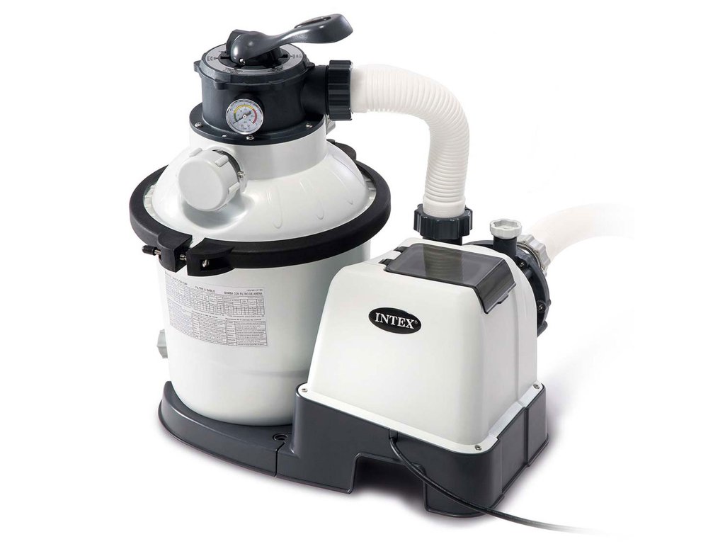 Písková pumpa Intex dokáže přečerpat 5700 litrů za hodinu a pojme 12 kg písku.