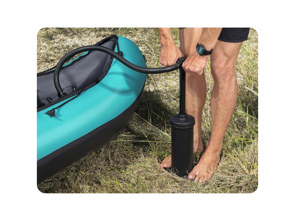 Pokud máte dost namáhavého nafukování výrobků, rozhodněte se pro koupi praktické pístové pumpy značky Bestway, která vám ušetří čas a energii při nafukování předmětů. Má tři vyměnitelné koncovky, které ji činí kompatibilní se všemi nafukovacími produkty. Není třeba ji zapojovat do elektriky, takže je ideální na výlety pod stan. Pumpa je navržena tak, aby co nejefektivněji dodávala vzduch do nafukovaného předmětu. Každý pohyb pumpy, směrem nahoru i dolů, natlakuje vzduch s kapacitou 1400 cm3.
