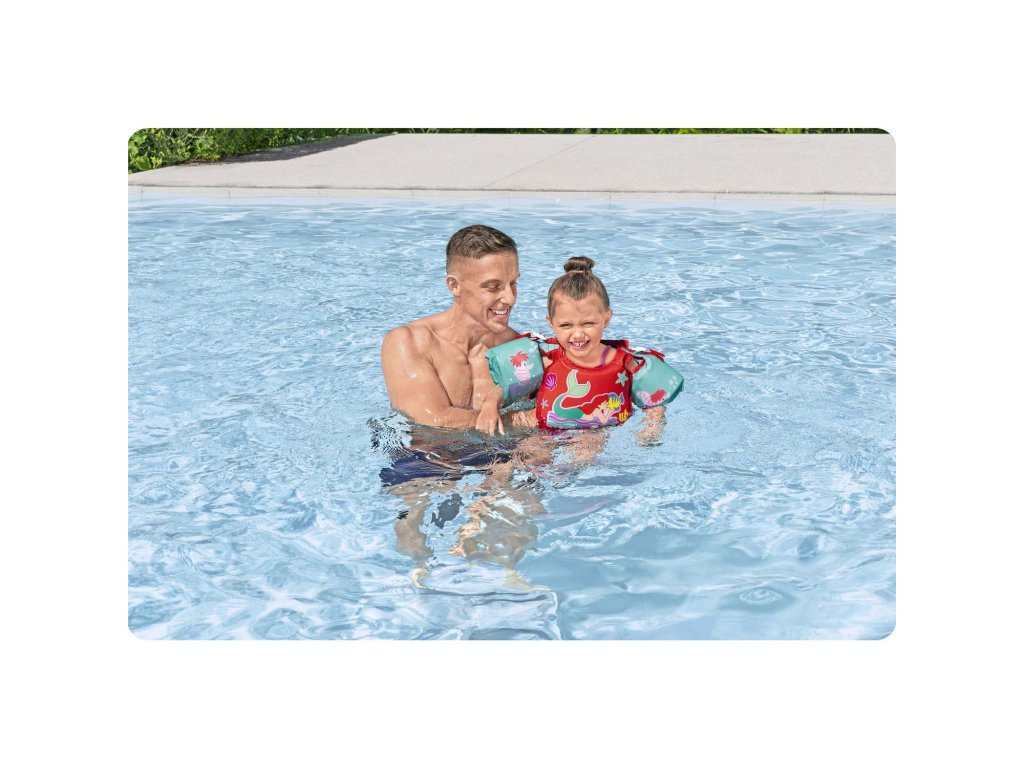 První kontakt s vodou bývá těžký, proto při učení plavání pomůže dítěti vesta značky Bestway s originální licencí Disney.
