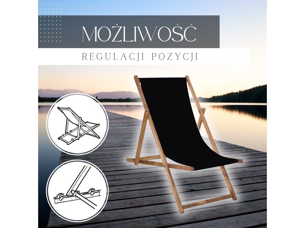 Plážové křeslo DC0012 černá- Rám vyrobený z odolného bukového dřeva