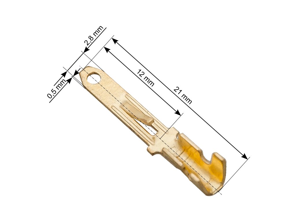 - Konektor: Ploché provedení usnadňuje připojení na různé typy vodičů, což dělá tyto konektory univerzálním řešením pro vaše potřeby.