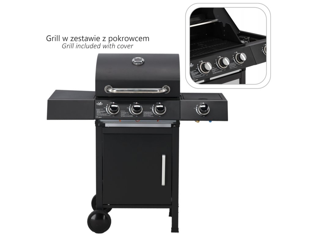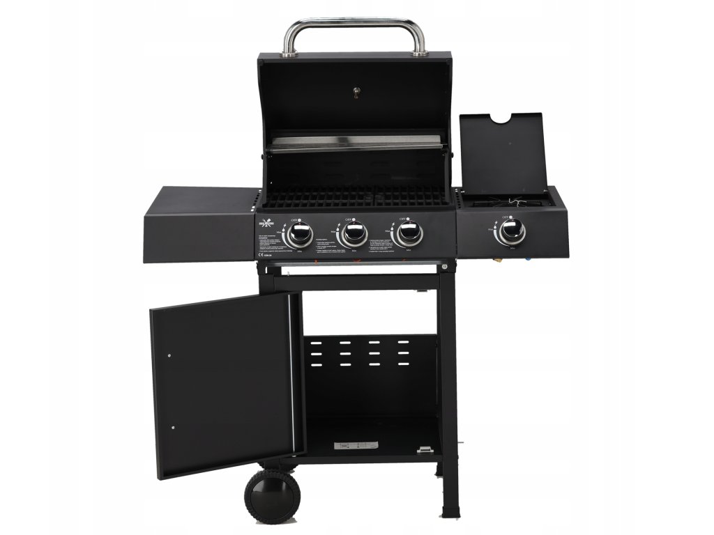 3-plateový plynový gril s bočním horákem je ideálním řešením pro milovníky grilování. Díky pevné konstrukci, smaltovaným roštům a doplňkovému bočnímu horáku je příprava jídel ještě pohodlnější a efektivnější.