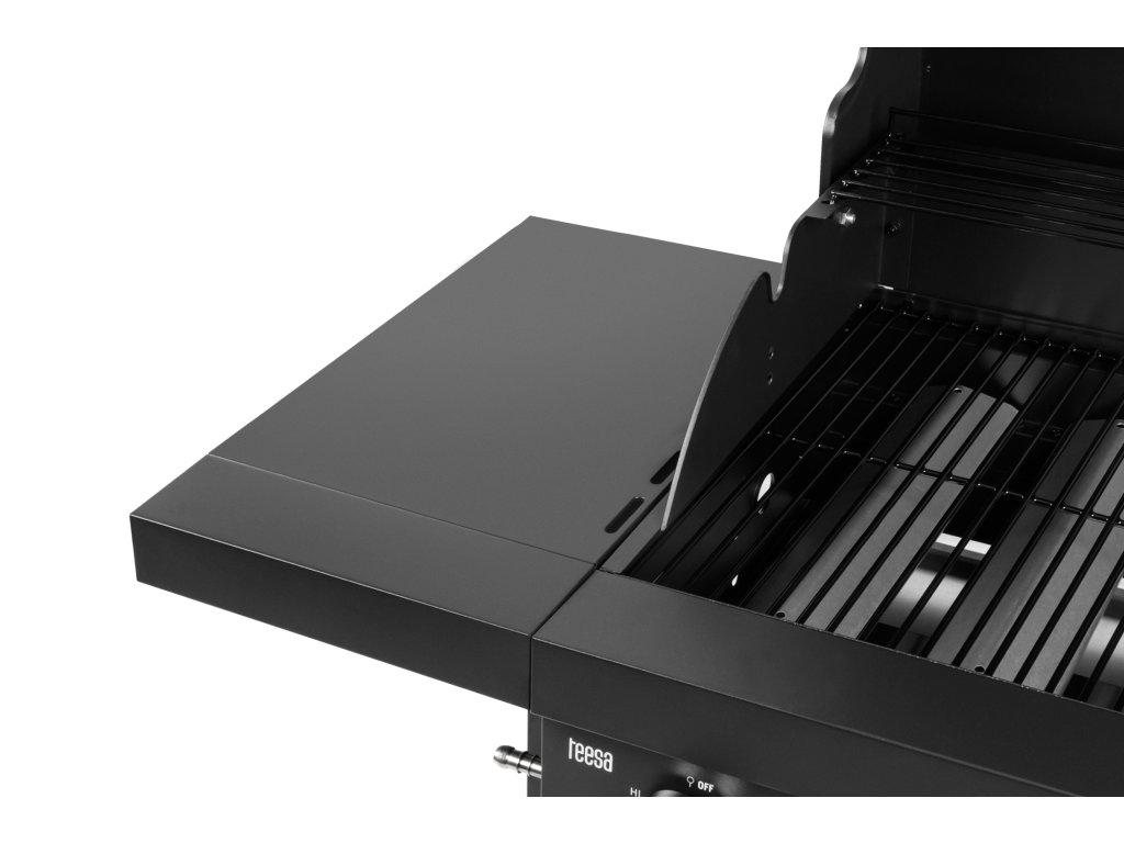 Gril Teesa má nejen prostorný rošt, ale také dvě boční police, které můžete snadno přeměnit na místo pro přípravu pokrmů. Toto mimořádně praktické řešení zajistí, že grilování bude čirou radostí.