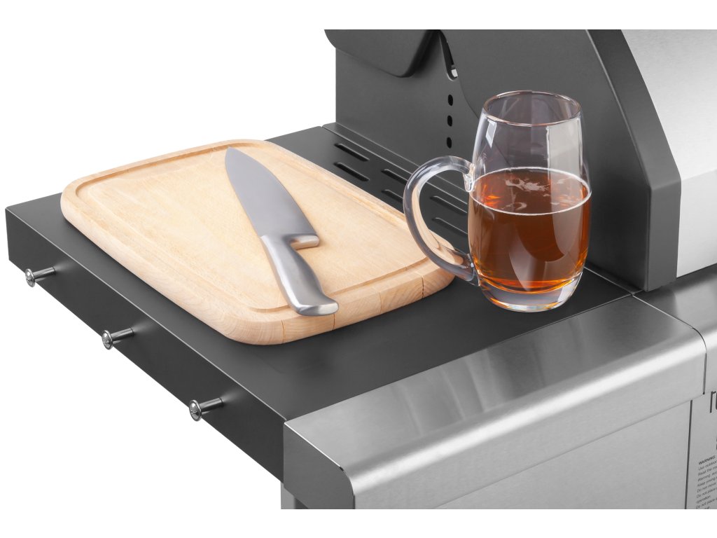 Pod roštem grilu Teesa se nachází 4 hořáky o celkovém výkonu 14,4 kW. To ale není všechno! Jeden z pracovních stolků skrývá další hořák o výkonu 3 kW, který vám umožní například připravit omáčku ke grilovaným pokrmům.
