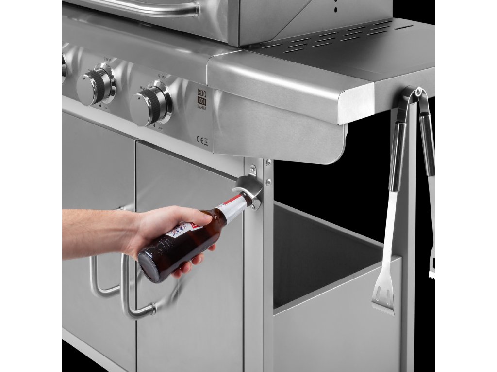 To není konec vylepšení, které gril Teesa nabízí. Zařízení má také praktické háčky, na které můžete pověsit potřebné příslušenství. Navíc je gril vybaven také otvírákem na láhve! Stojí také za zmínku skříňka, díky níž udržíte pořádek kolem pracovního místa.
