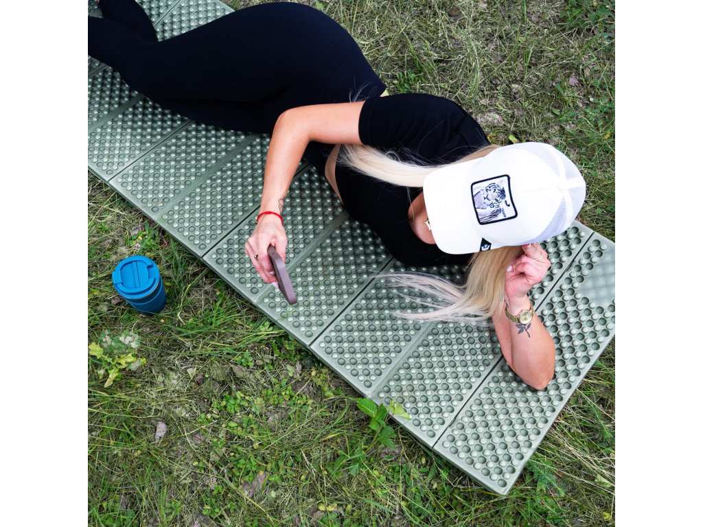 - V sadě: gumy spojené páskem z tkaniny k zajištění složené podložky, pásek tvoří pohodlnou rukojeť