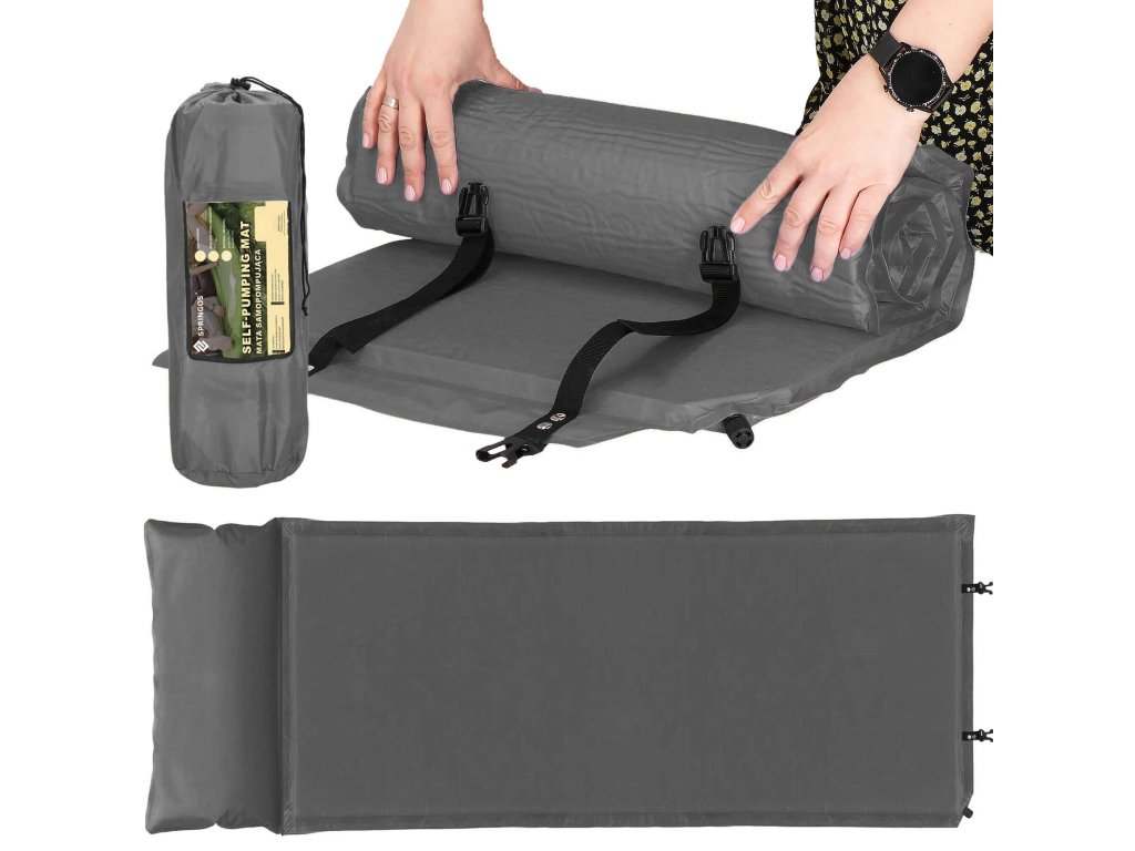 Nastavitelné popruhy s rychloupínacími sponami - drží podložku na místě po složení