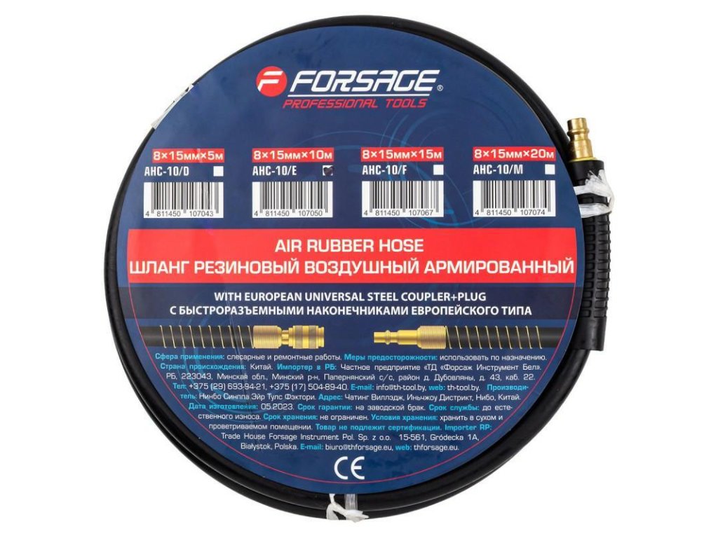 Pneumatická gumová vyztužená hadice 8mm x 15mm 10m s rychlospojkami