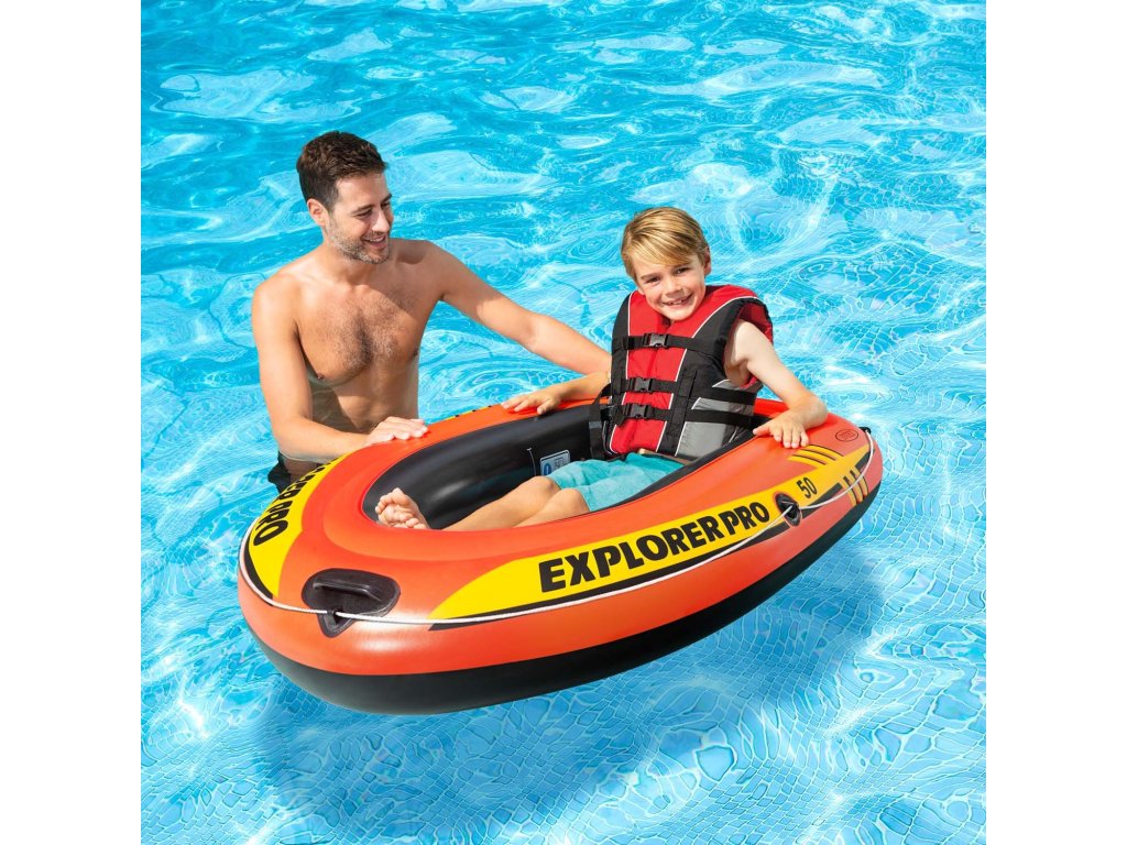 Explorer PRO50 o rozměrech 137 x 85 x 23 cm je určen pro plavání s maximálním zatížením do 40 kilogramů, což znamená, že může na svůj palubu vzít jedno dítě.