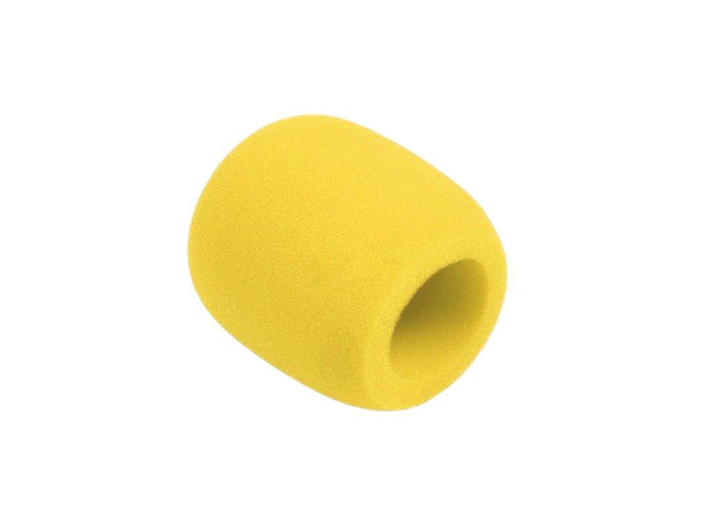 Žlutá houbička pasuje na většinu standardních mikrofonů, jak dynamických, tak kondenzátorových. Je snadno nasaditelná a snímatelná, což umožňuje její rychlou výměnu nebo čištění.