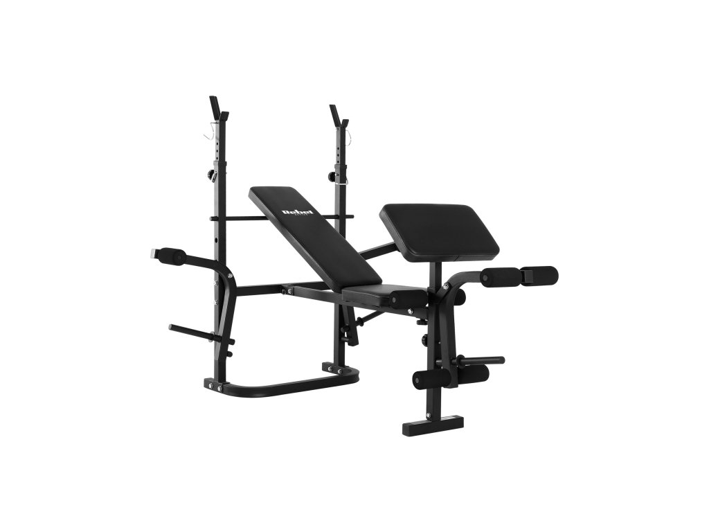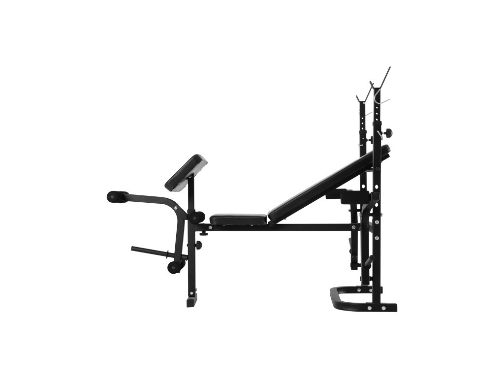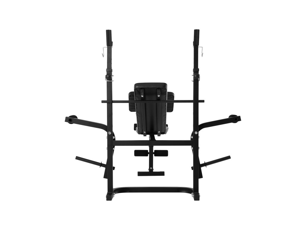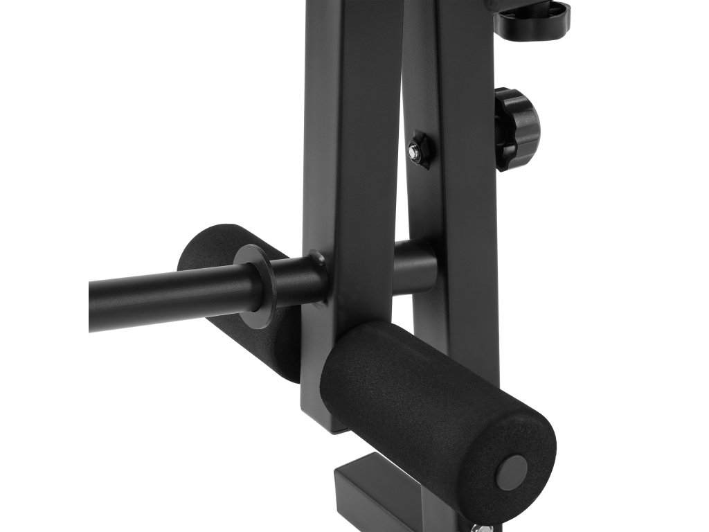 Lavice je vybavena stojany na činky se vzdáleností 60 cm, s nastavitelnou výškou od 110 do 123 cm, což umožňuje přizpůsobení zařízení pro různá cvičení a výšku uživatele. Další příslušenství, jako je zařízení pro cvičení nohou a pavoučí rukojeti, umožňuje všestranný trénink dolních partií těla. Maximální zatížení těchto prvků je 25 kg, což činí lavici ideální pro doplnění silového tréninku.