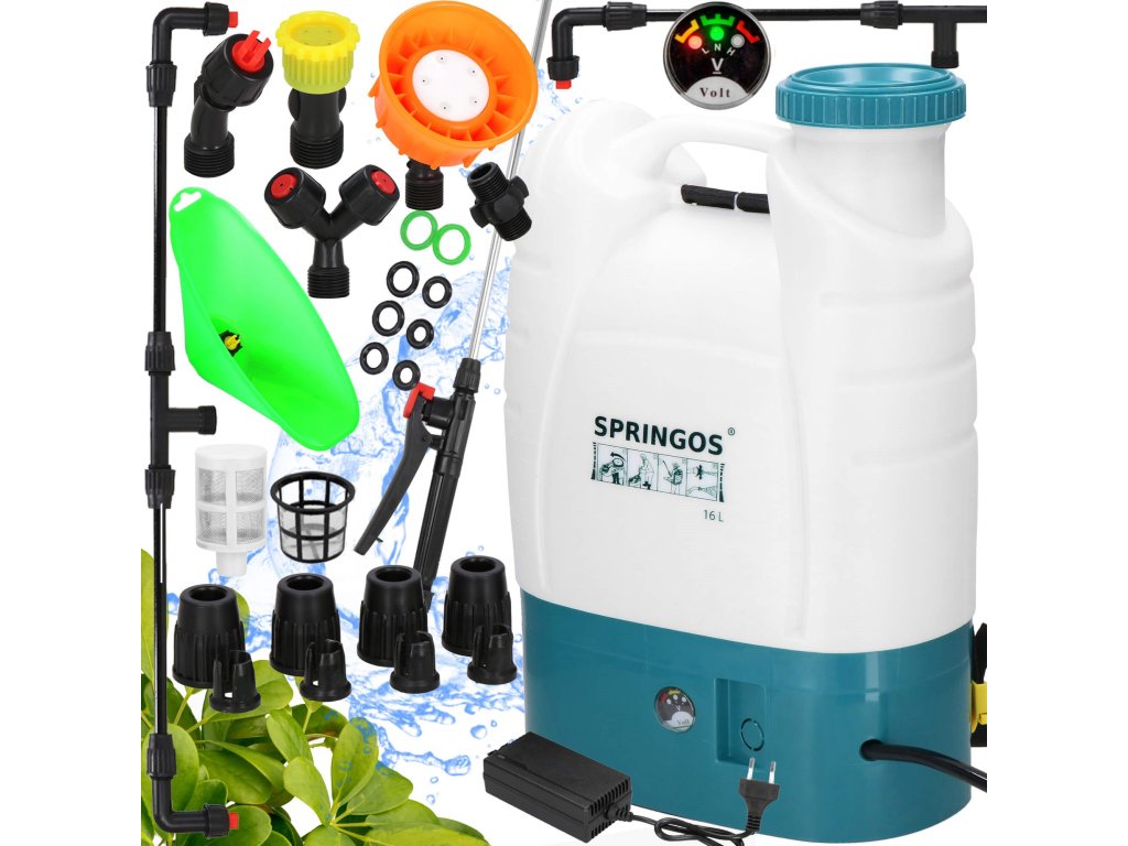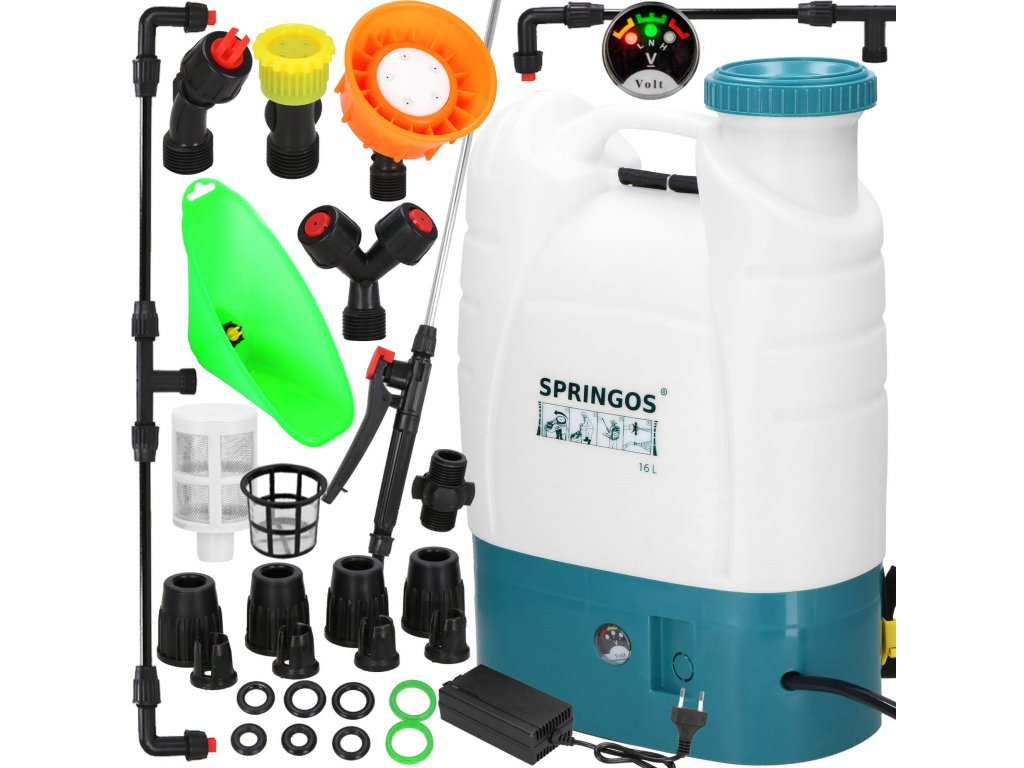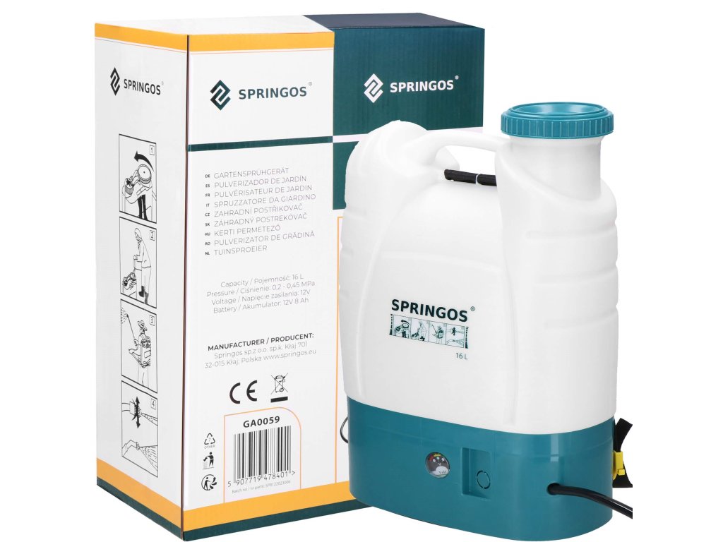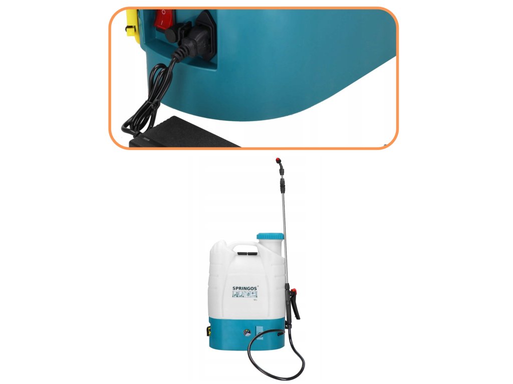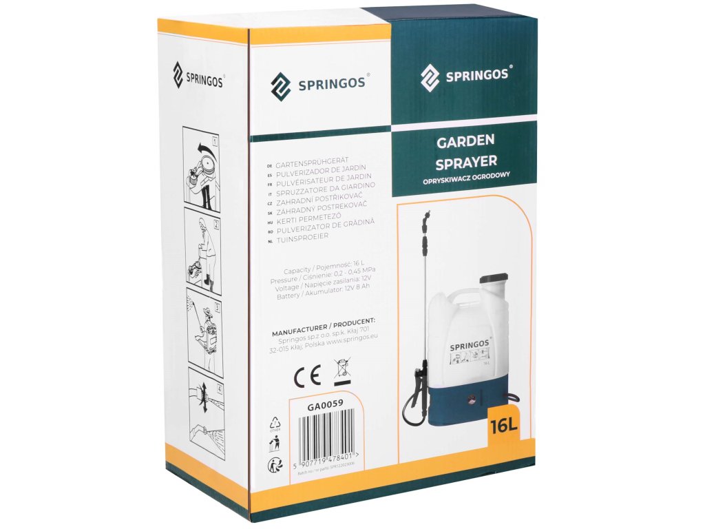 - Na přední straně postřikovače je stupnice od 4 l do 18 l a návod k obsluze ve 4 krocích