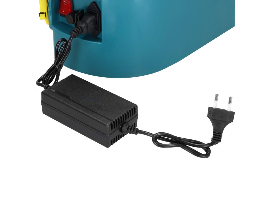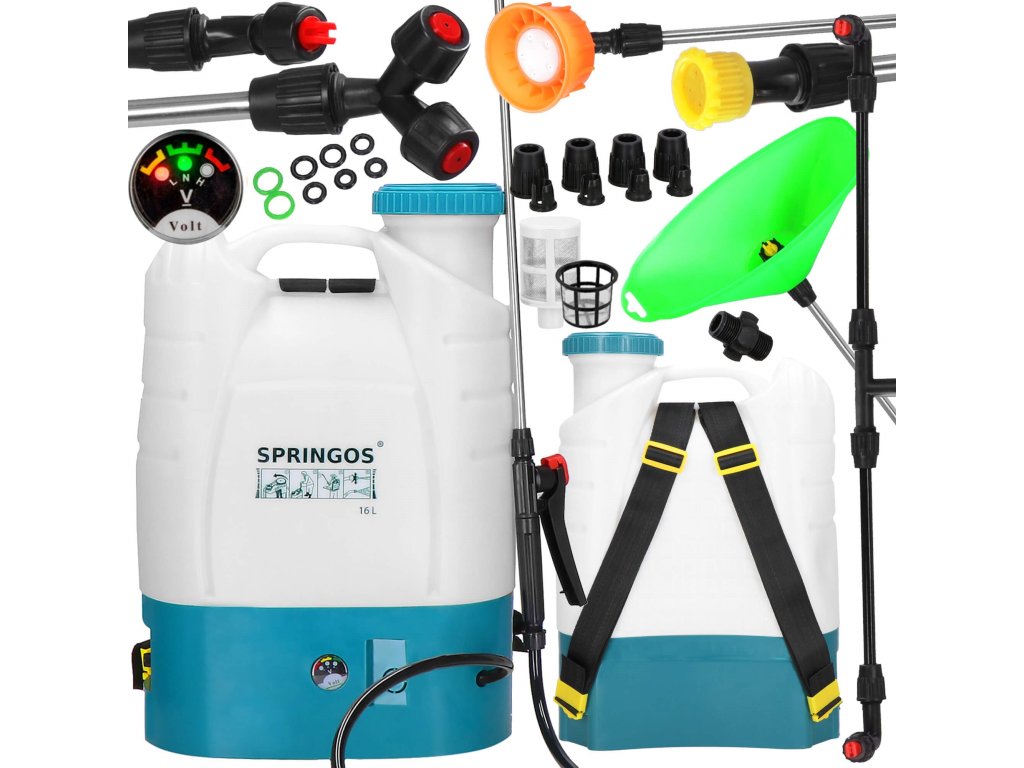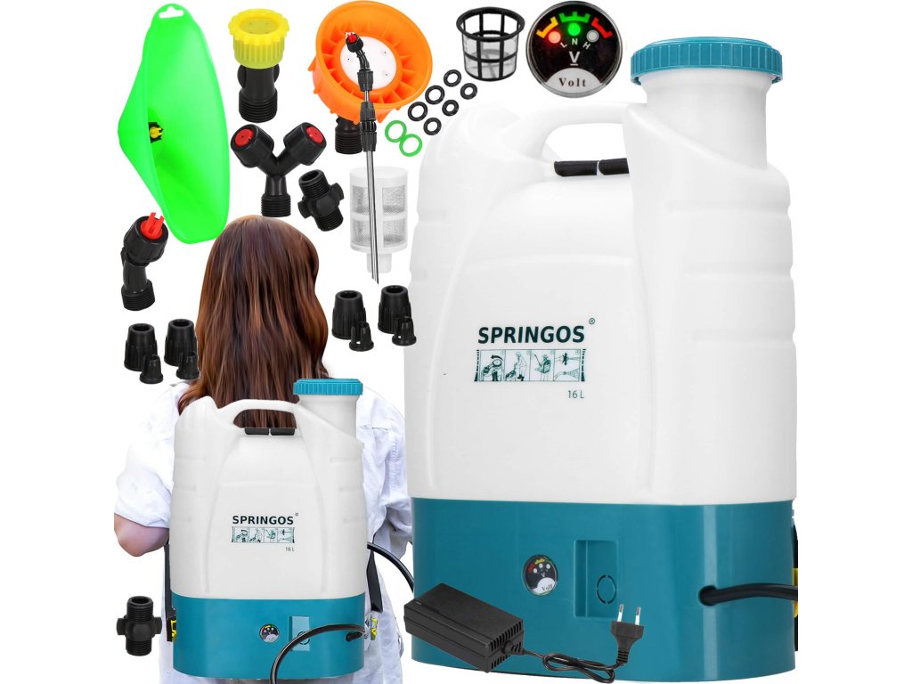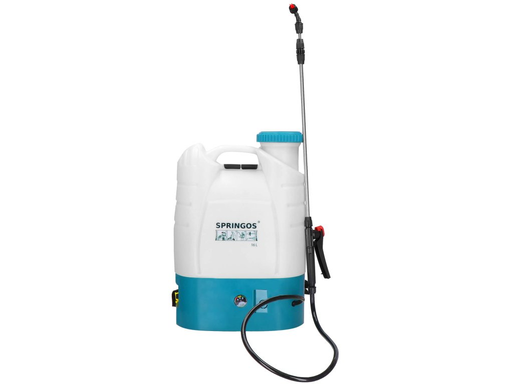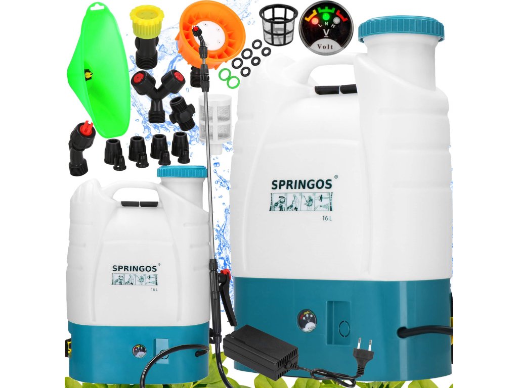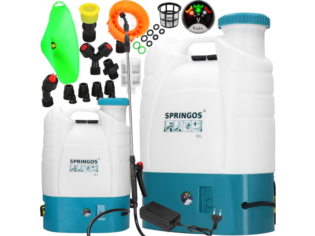- Na přední straně postřikovače je stupnice od 4 l do 18 l a návod k obsluze ve 4 krocích