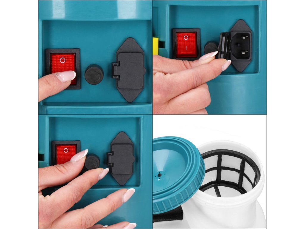 - Na boku rozprašovače je červené tlačítko, kterým můžete rozprašovač zapnout a vypnout