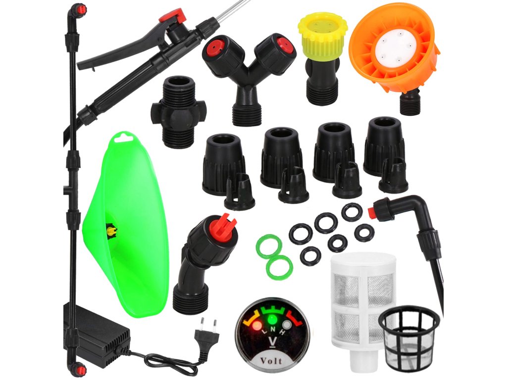 - Vedle něj se nachází kovový hrot, na kterém by měl být umístěn černý ventil, pomocí kterého můžete manuálně nastavit provozní tlak postřikovače.