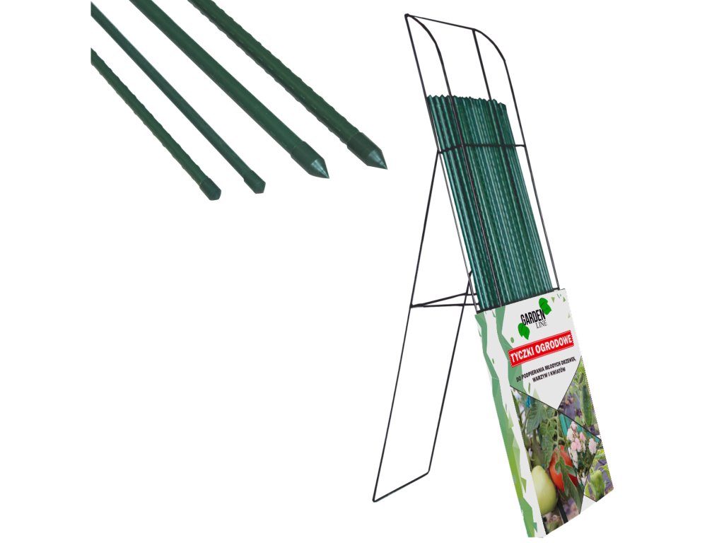 Povlakované tyčky usnadňují pěstování jak nižších, tak i vyšších rostlin v zemi, zeleniny, keřů či stromků v zahrádce u domu. Zaostřený konec usnadňuje usazení podpěry do země a drobné výstupky po celé délce zabraňují jejímu vypadnutí. Díky solidnímu provedení z kovu a pokrytí plastem jsou velmi odolné vůči poškození a nepříznivým povětrnostním podmínkám, a díky zelené barvě se stávají téměř neviditelnými na pozadí rostlin. Tyčky je možné používat na podpírání popínavých rostlin, keřů, jemných květin, zeleninových a ovocných rostlin. Zelená barva produktu se ideálně hodí k rostlinám, také jako dekorace zahrad. Tyč je potřeba umístit do země vedle rostliny a připevnit k ní stonku, tímto způsobem zajistíme vynikající stabilizaci a ochranu před zlomením i během větrného počasí. Navíc součástí sady je ocelový stojan• Délka: 120 cm
