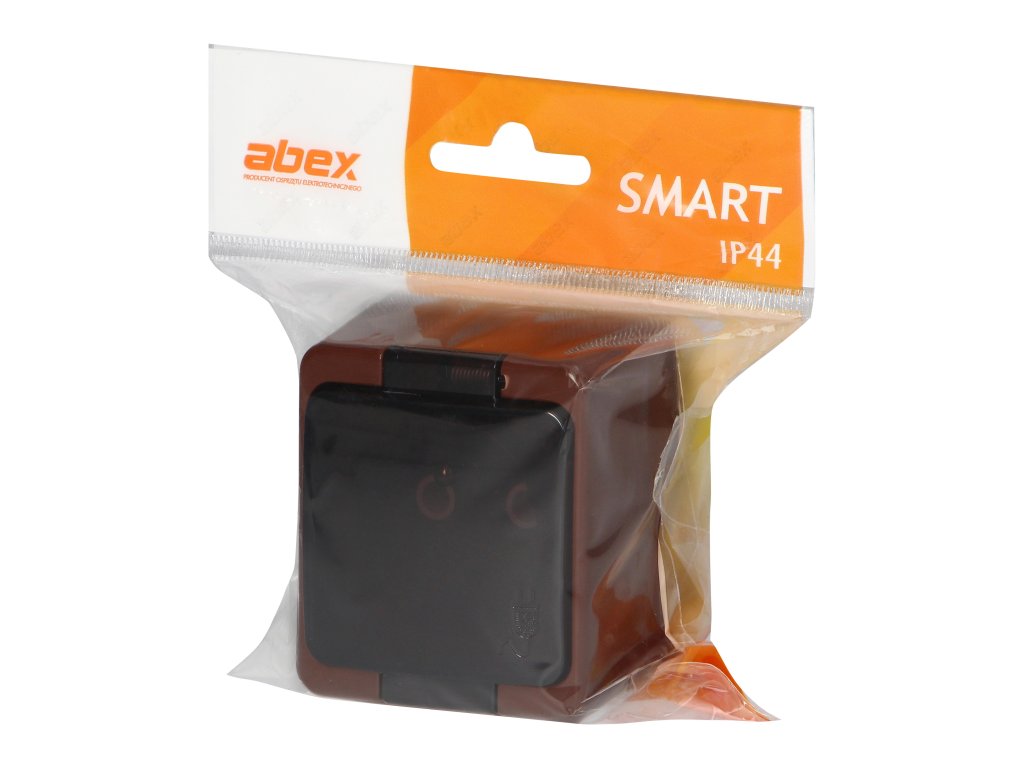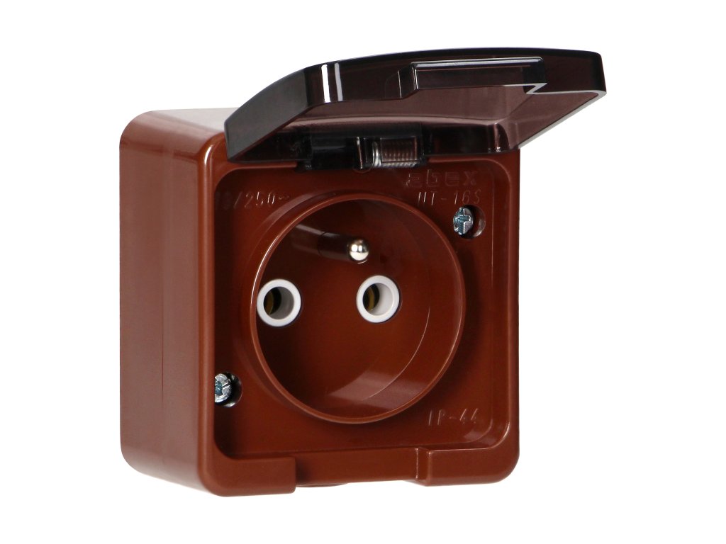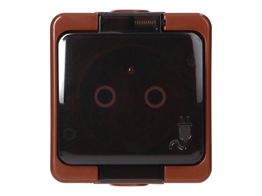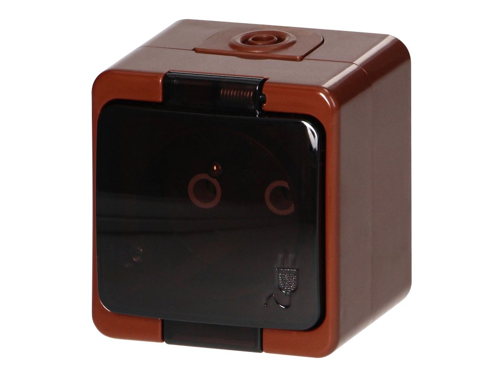 Povrchová montáž jedné zásuvky 2P+E, stříkající voděodolná s kouřovým krytem, IP44, SMART, hnědáDoplňkové parametry