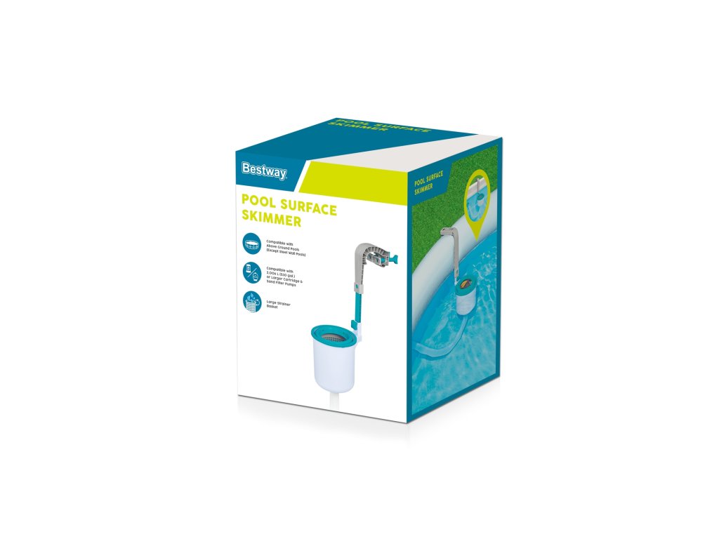 Skimmer na čištění vody je nezbytným prvkem vybavení každého bazénu!Skimmer, po připojení k filtračnímu čerpadlu s výkonem minimálně 2006 litrů/h, slouží k čištění povrchu vody od plovoucích spadlých listů nebo hmyzu.