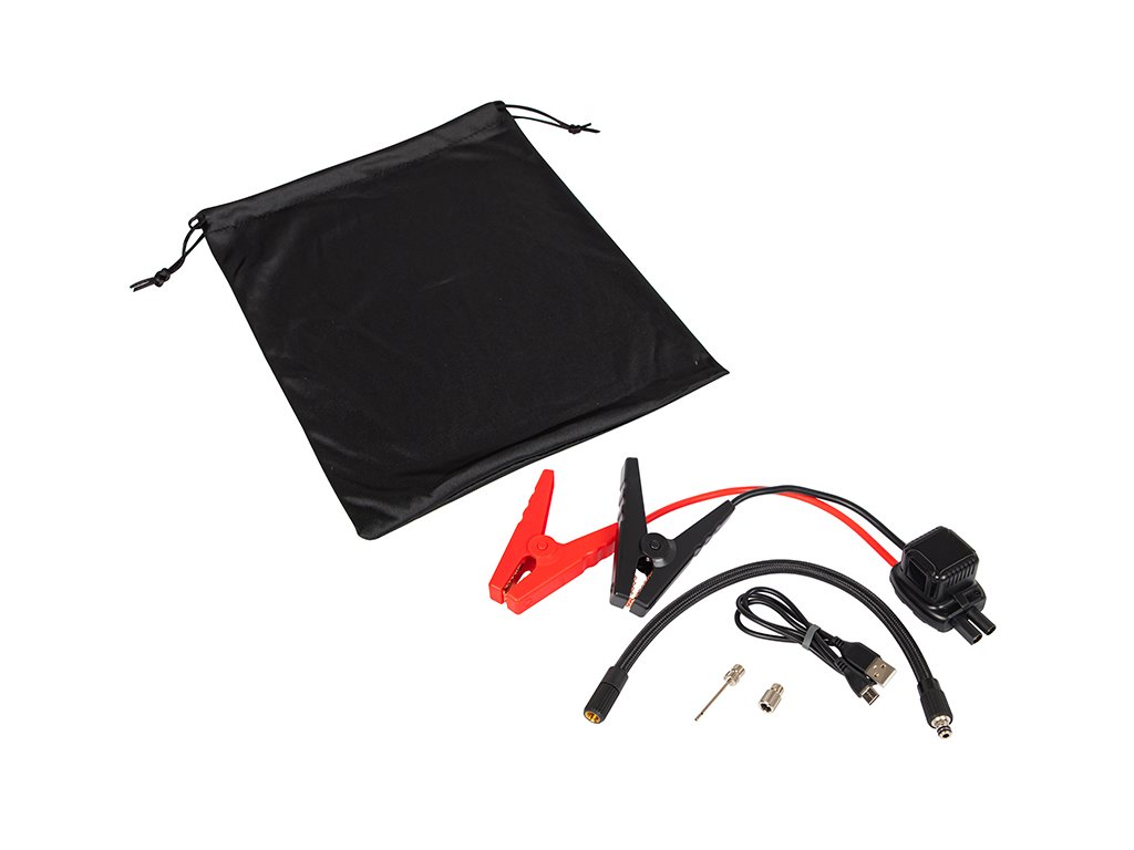 - Doplňkové příslušenství – hadička, adaptér, jehla, startovací kabely, USB-C kabel, obal