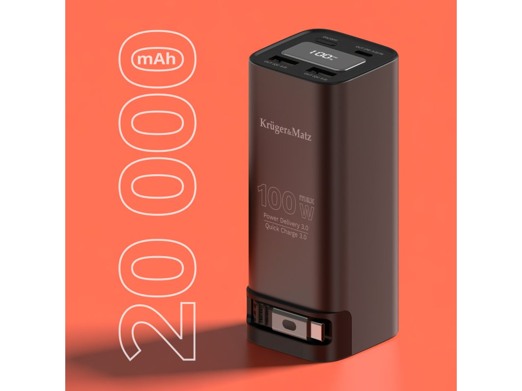 PowerBank Kruger&Matz 20000 mAh Li-ion 100W s funkcí QC a PD