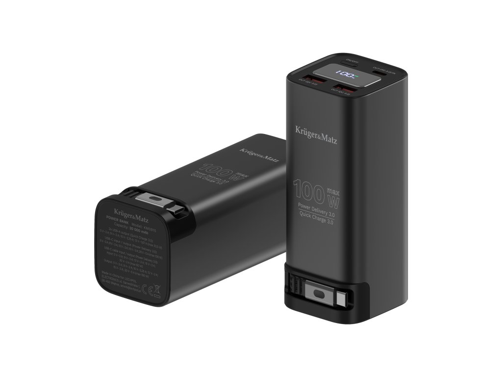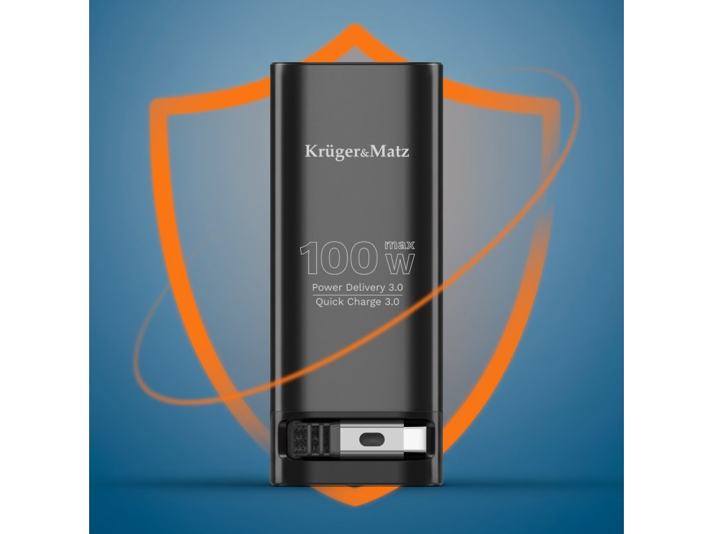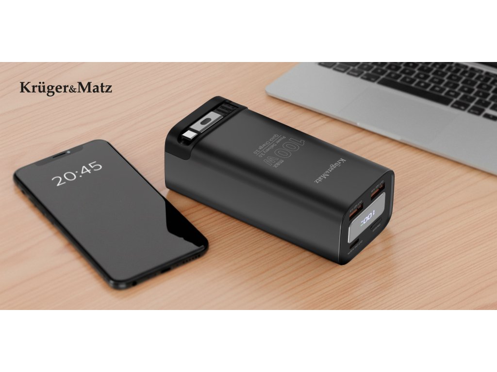 Power bank Kruger&Matz je skutečná síla v kompaktní formě. Podpora Power Delivery 3.0 až 100 W způsobuje, že rychle nabiješ nejen telefon, ale také notebook či jiná náročná zařízení. Konec dlouhého čekání – nyní během několika okamžiků získáš pořádný přísun energie. Díky podpoře Quick Charge 3.0 tvé zařízení funguje rychleji a déle, a ty se můžeš soustředit na to, co je pro tebe důležité.