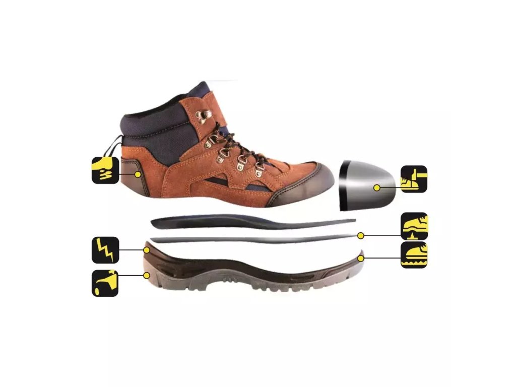 - Bezpečnostní obuv s ocelovou špičkou a ocelovou stélkou