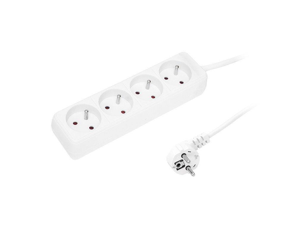 Sieťový predlžovací kábel PR-470P s uhlovou sieťovou zástrčkou a 4 uzemnenými zásuvkami.